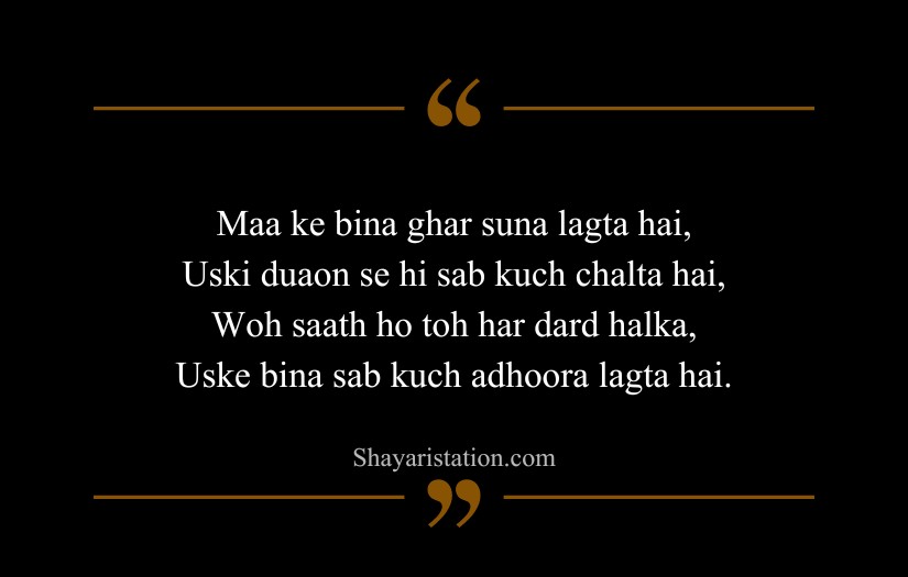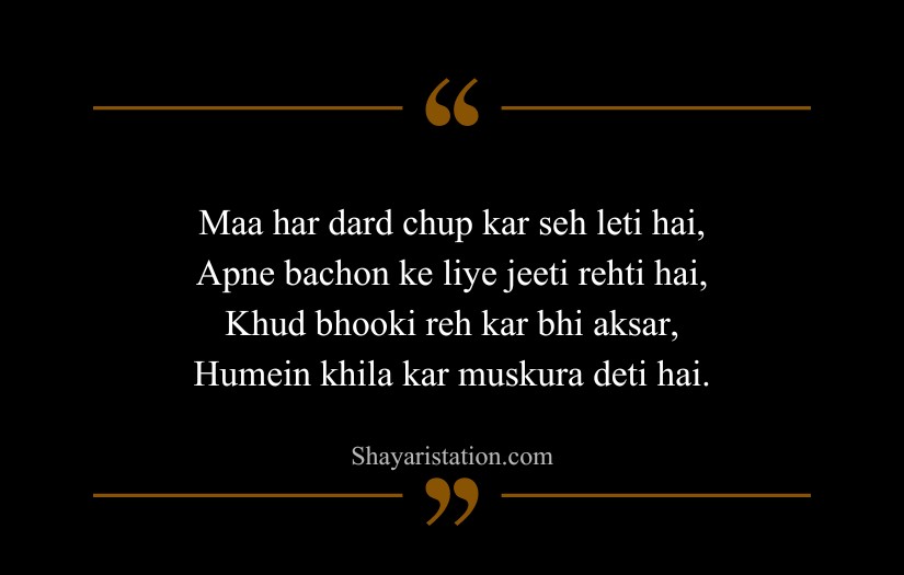 Many writers and poets have described a mother’s love as the strongest and most gentle force in the world. Their influence appears in maa shayari that speaks of a mother’s sacrifices, endless prayers, and constant support. A mother is shown as a source of comfort, strength, and guidance through every stage of life.
