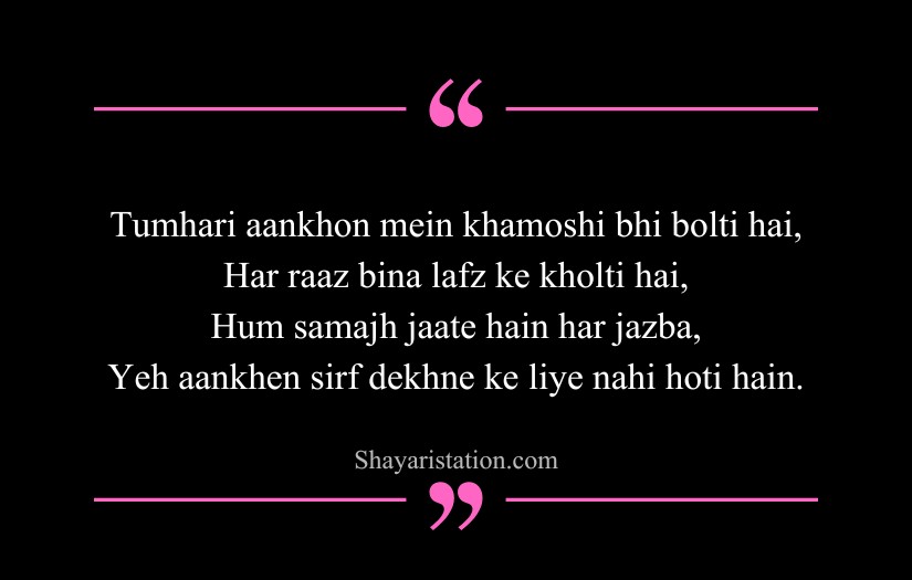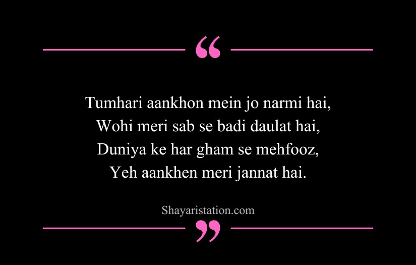 Many poets and writers, including Faiz Ahmed Faiz, Rabindranath Tagore, and John Keats, described eyes as mirrors of the soul. Their influence appears in shayari that speaks of eyes shining with hope, burning with desire, or filling with unshed tears. Eyes become symbols of both beauty and emotional depth.